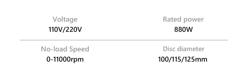 - Install 100/115/125mm disc, side safety switch, 6 speed adjustable