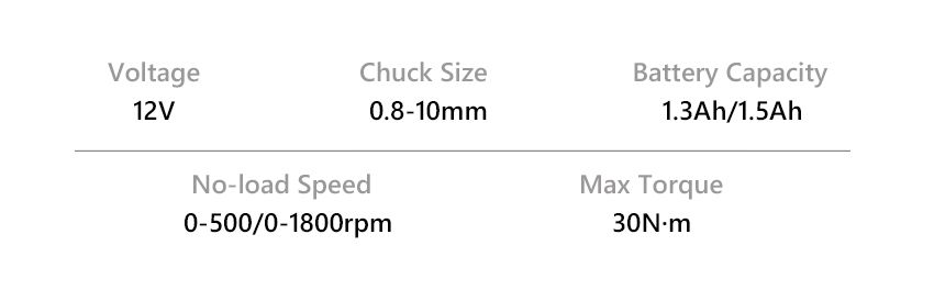 - Three-claw self-locking chuck, which can hold drill bits or bit set within a diameter of 10mm